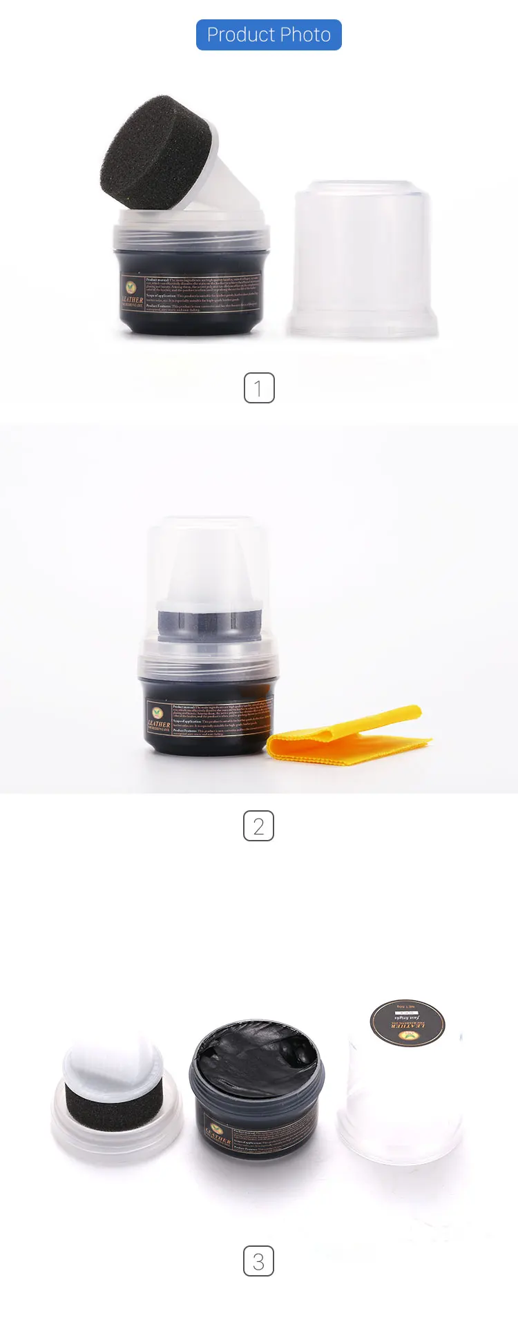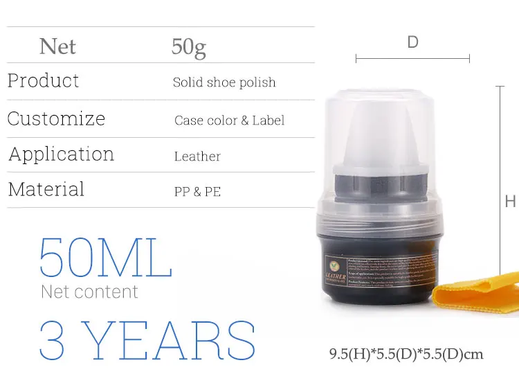 Hi, this is cream leather oil, net content: 50g, there are three colors: black, neutral and brown. This shoe oil has a sponge brush inside, which is easy to pick up the shoe oil and color the leather with a brush. There is also a small handkerchief inside, which can be used to wipe the leather. It is very convenient to use, small and easy to carry. When you go out, you can also maintain your leather anytime and anywhere. The quality of the product is guaranteed, and the leather will be brand new after use. This product supports OEM, and the minimum quantity of OEM is 10000.