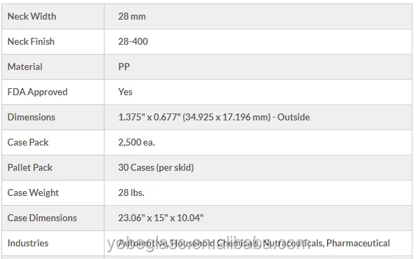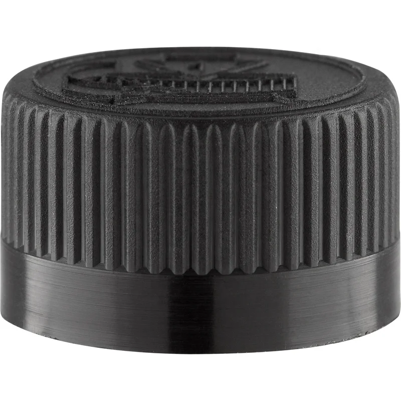 The cap is a 28mm (28-400) black polypropylene (PP) plastic child resistant cap with an F-217® 3-ply Co-extruded Foam Liner. This cap features embossed pictorial directions on the top surface of the cap, ideal for storing potentially harmful substances. The F-217 liners are compatible with many substances and are great for general lining applications.