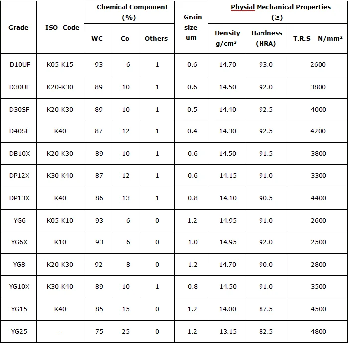 - Tungsten Cemented Carbide Grade: