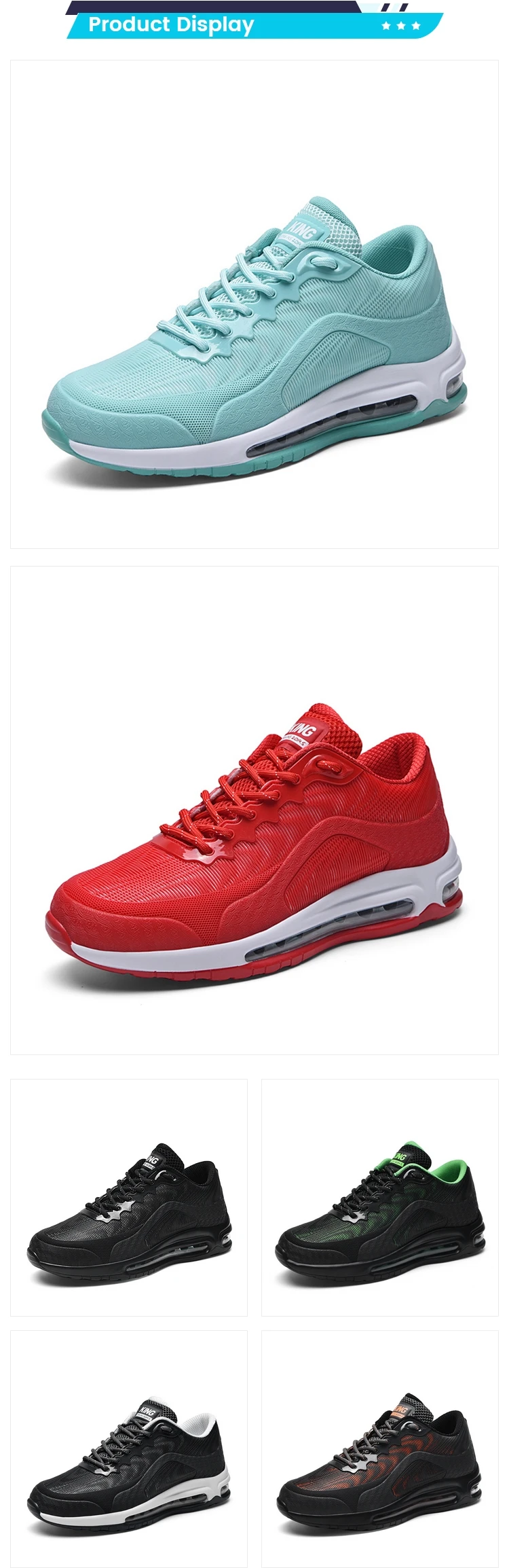 Mint green,black/green,black/grey.red,grey/white,orange/black