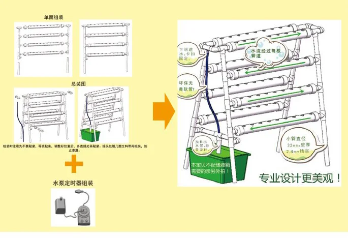 Package Included | 1 * Holder and main pipe 36 * Engraftment basket 1 set * sponge 1 * Hose 1 * Water Pump (the water tank is not include) |
