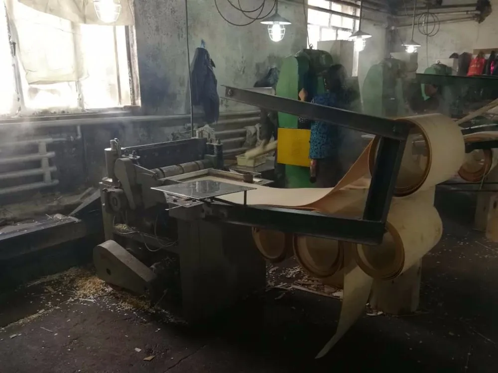 We select good quality log, and then debarker them. 2ed, we peel the log into wood veneer. At the same time, a roller works after peeled. 3ed step is press clipping the wood veneer into pieces. and 4th one is drying.