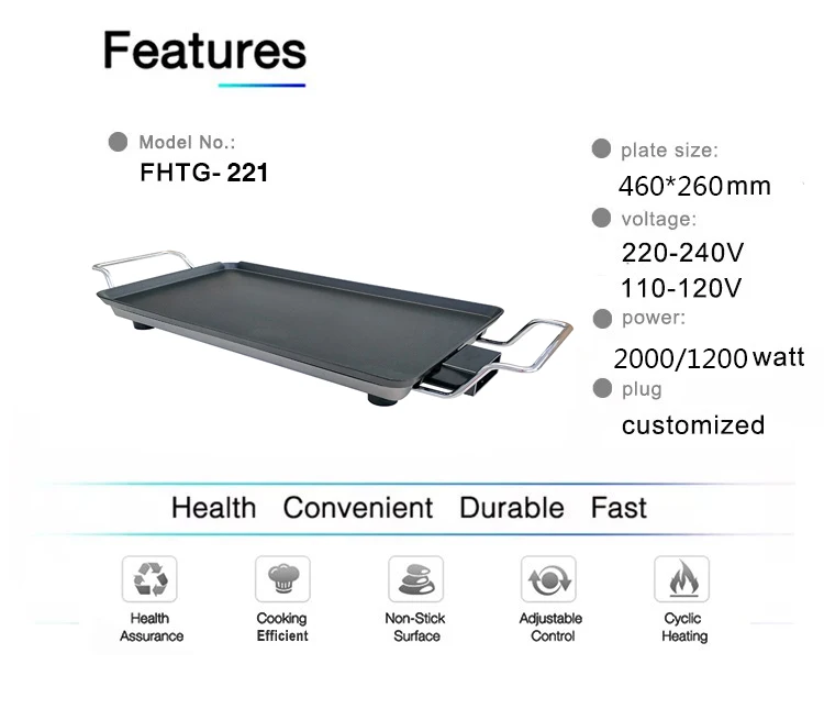Item No. | Electric Table Grill FHTG-221 | Product size | 60.5*25.9*9.1cm | |||