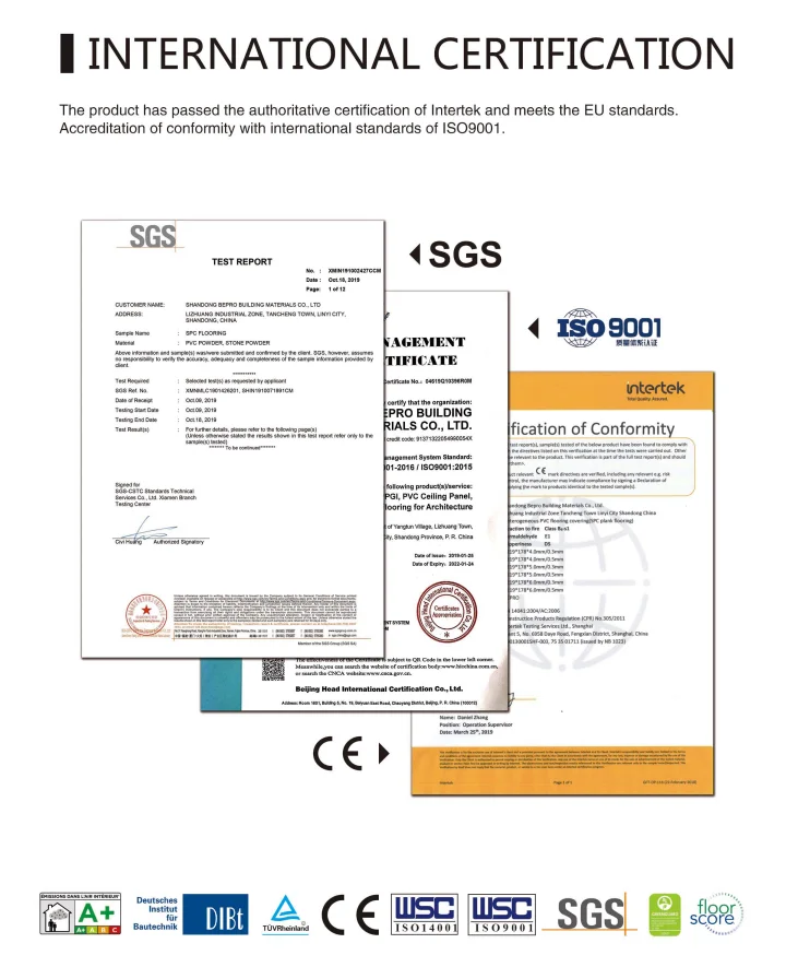 Our factory is located in Linyi City, Shandong Province of China, where only280 kilometers distance from Qingdao Port. The company have been awarded with the certificate of DIBT, CE, Greenguard, Floorscore, ISO9001, ISO14001, SGS and etc.