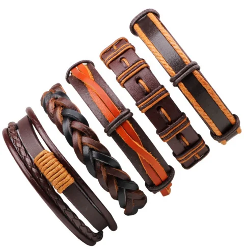 | Product Name | Mens Womens Fashion Wax Rope Genuine Leather Braided Multiple Bracelet |