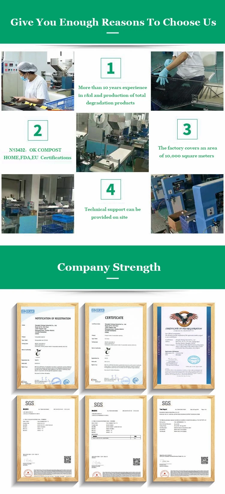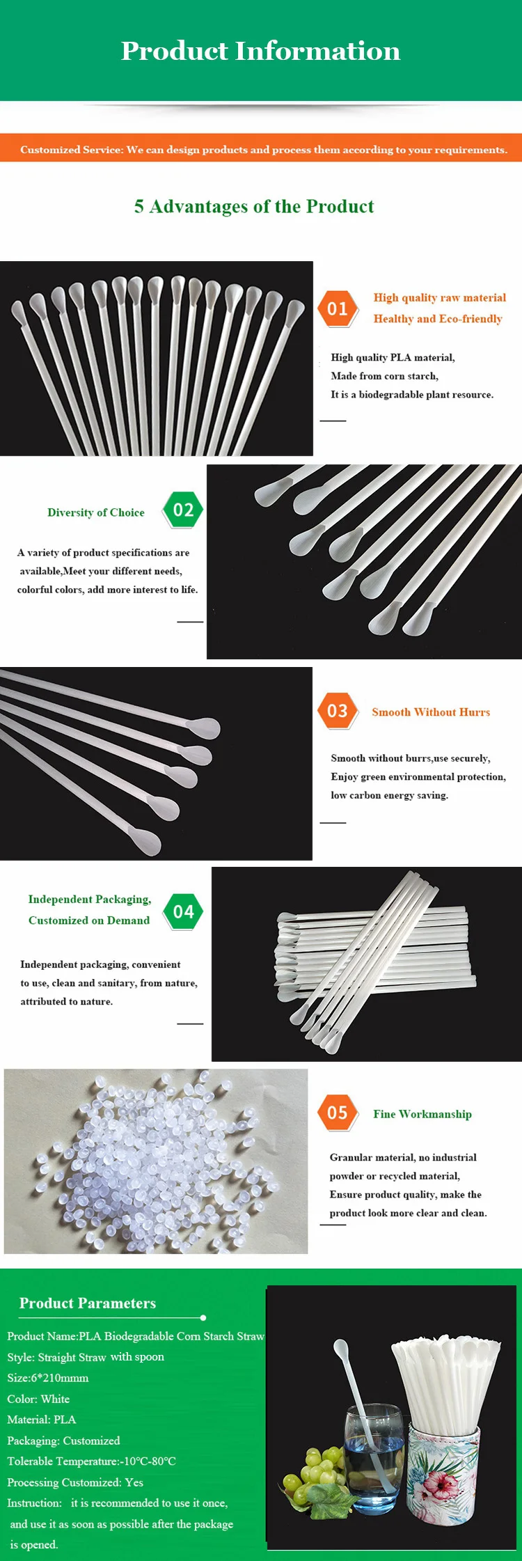Our Advantages 1) made from 100% PLA Polylactic acid 2) 100% biodegradable 3) Healthy,Nontoxic,Harmless and Sanitary 4) can be recycled and protect the source,no preservative 5) from the nature and back to nature