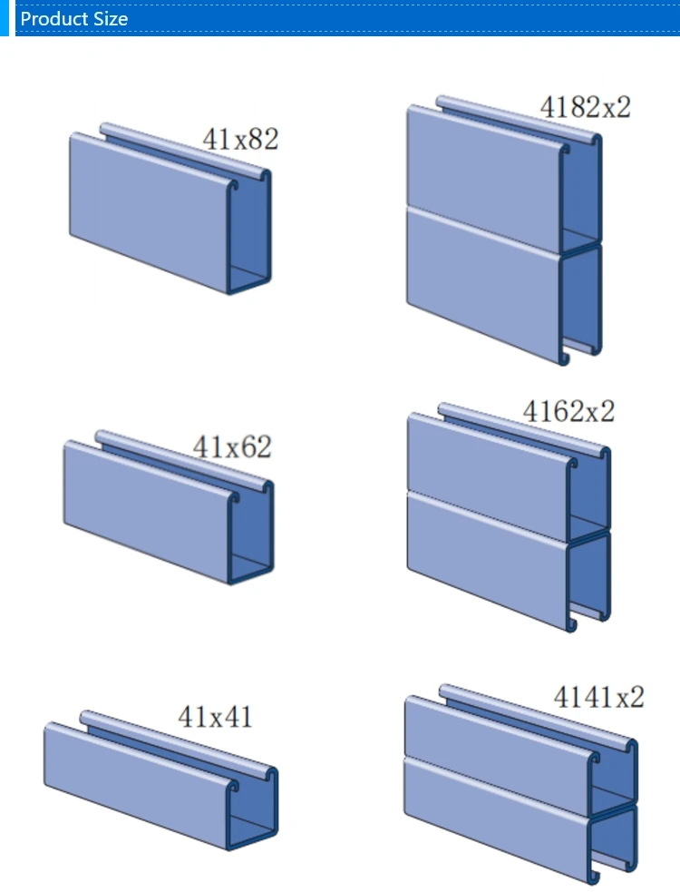 | Channel Size | 41*21mm,41*25mm,41*41mm,41*52mm,41*62mm,41*72mm ,41*82mm |
