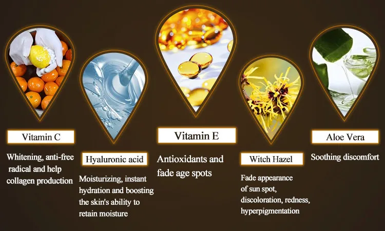 Main Ingredient | Aqua,Glycerol,3-O-Ethyl Ascorbic Acid,Vitamin E, Sodium hyaluronate,Carbomer,Triethanolamine, Hydroxyethylcellulose,midazolidinyurea, Methylparaben |