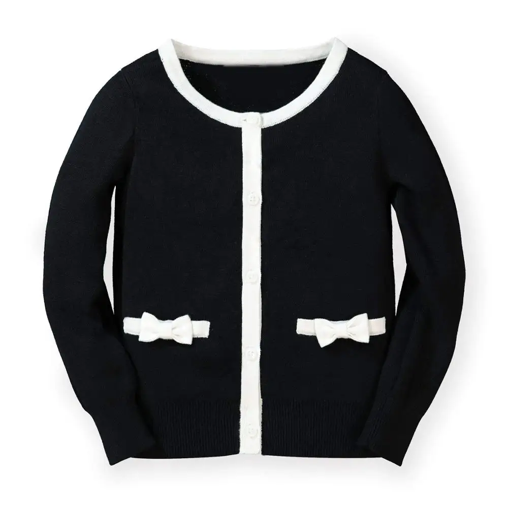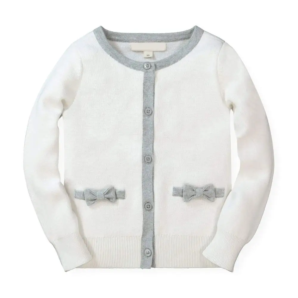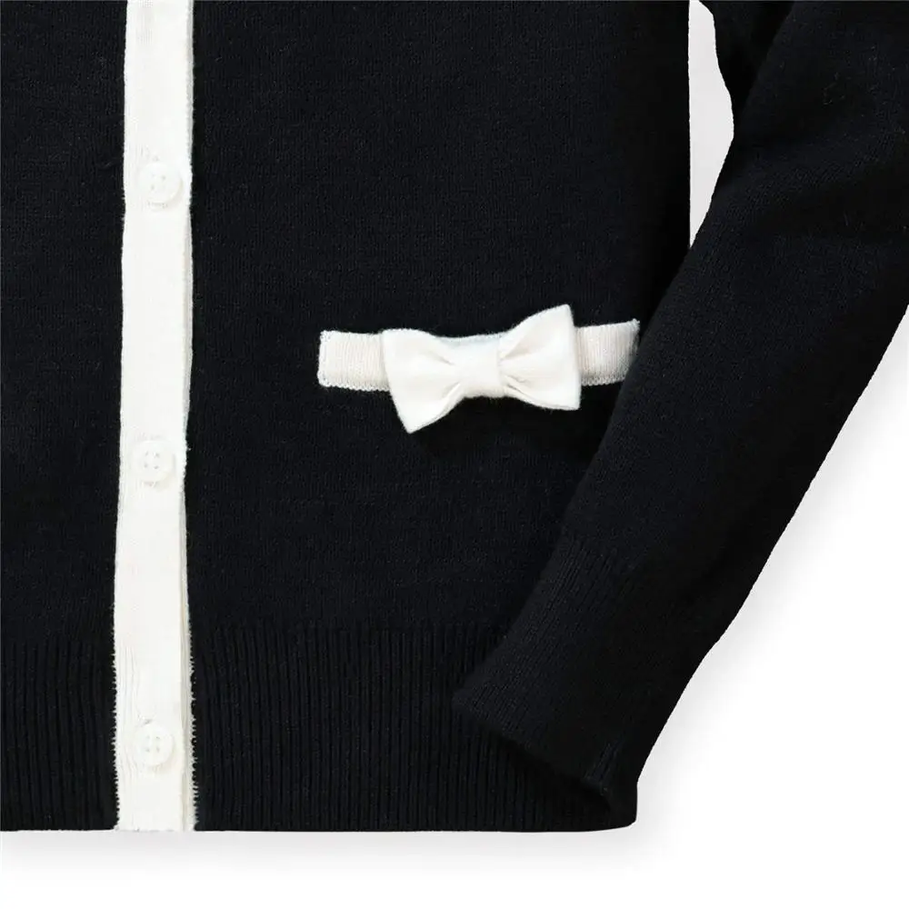 Custom Pocket Bow Long Sleeve Knitted Crewneck Sweater Girls Cardigan |