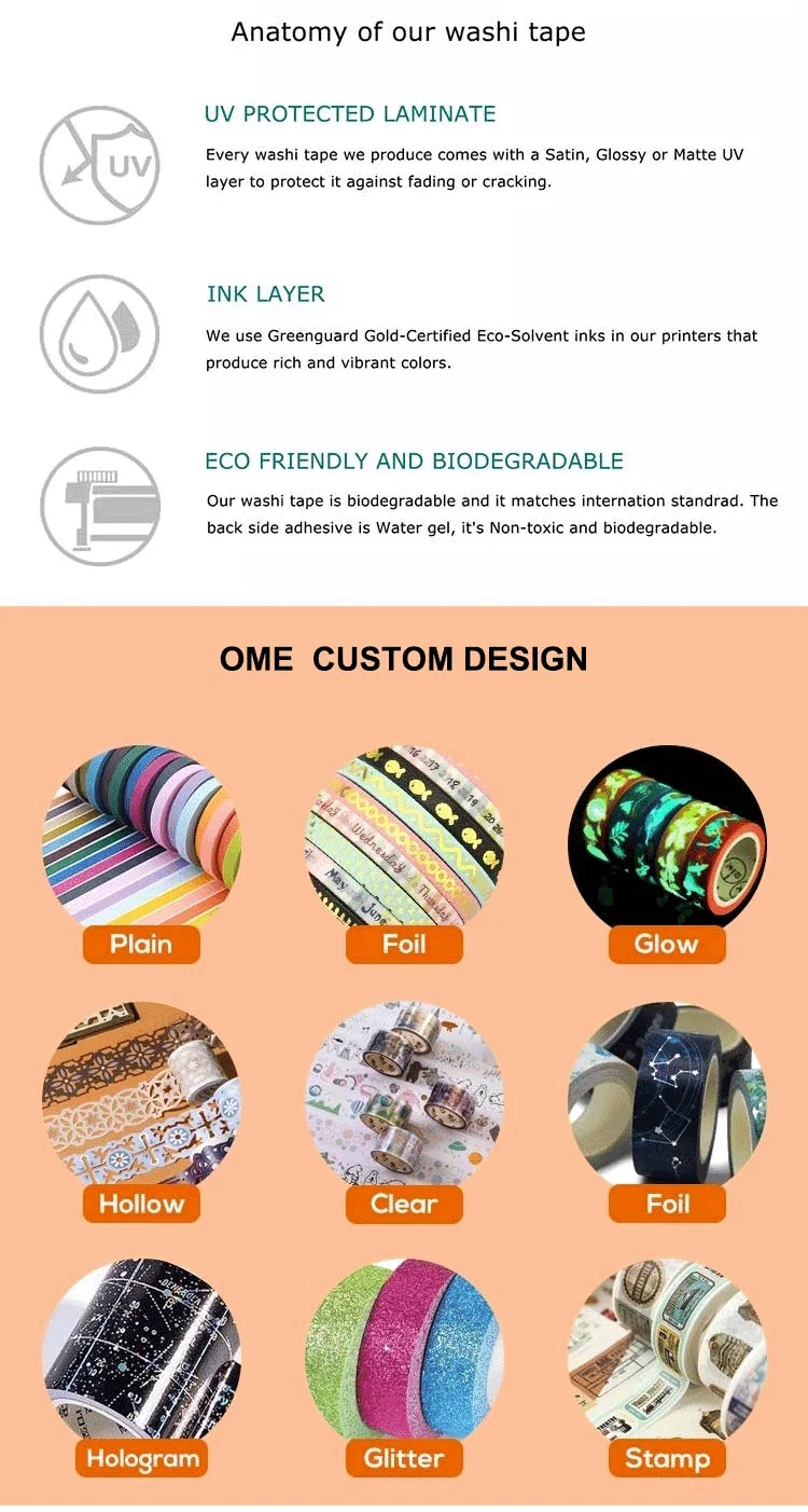 Q1, What is the MOQ of washi tape?A: 10 rolls each design.