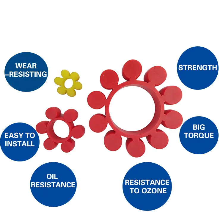 The plum blossom pad is used for damping, insulation and buffer transmission torque in the middle of the coupling. The torque transmitted by the plum blossom pads of different materials and different hardness is also different. The higher the hardness, the greater the torque transmitted