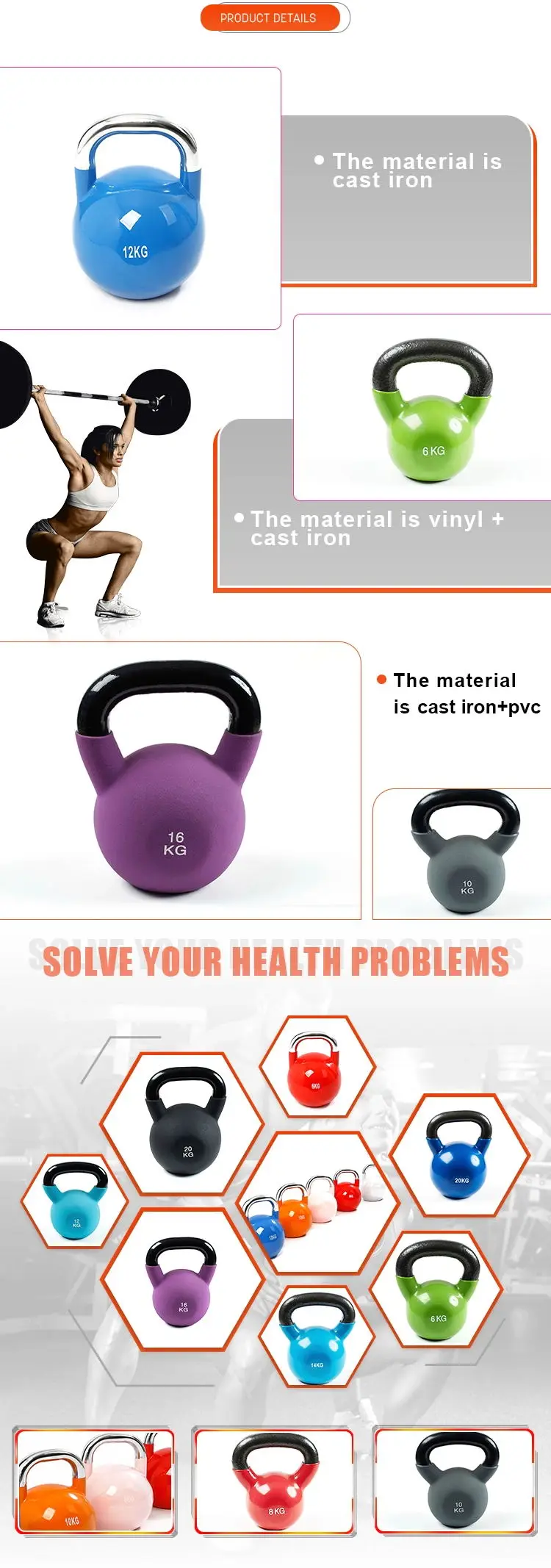 1. Cast iron kettlebells are vinyl dipping for durability and to help protect you.