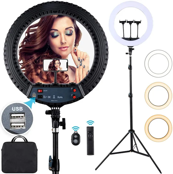 Product Name | 18 inch led ring light with 3 phone holder carry bag remote | |