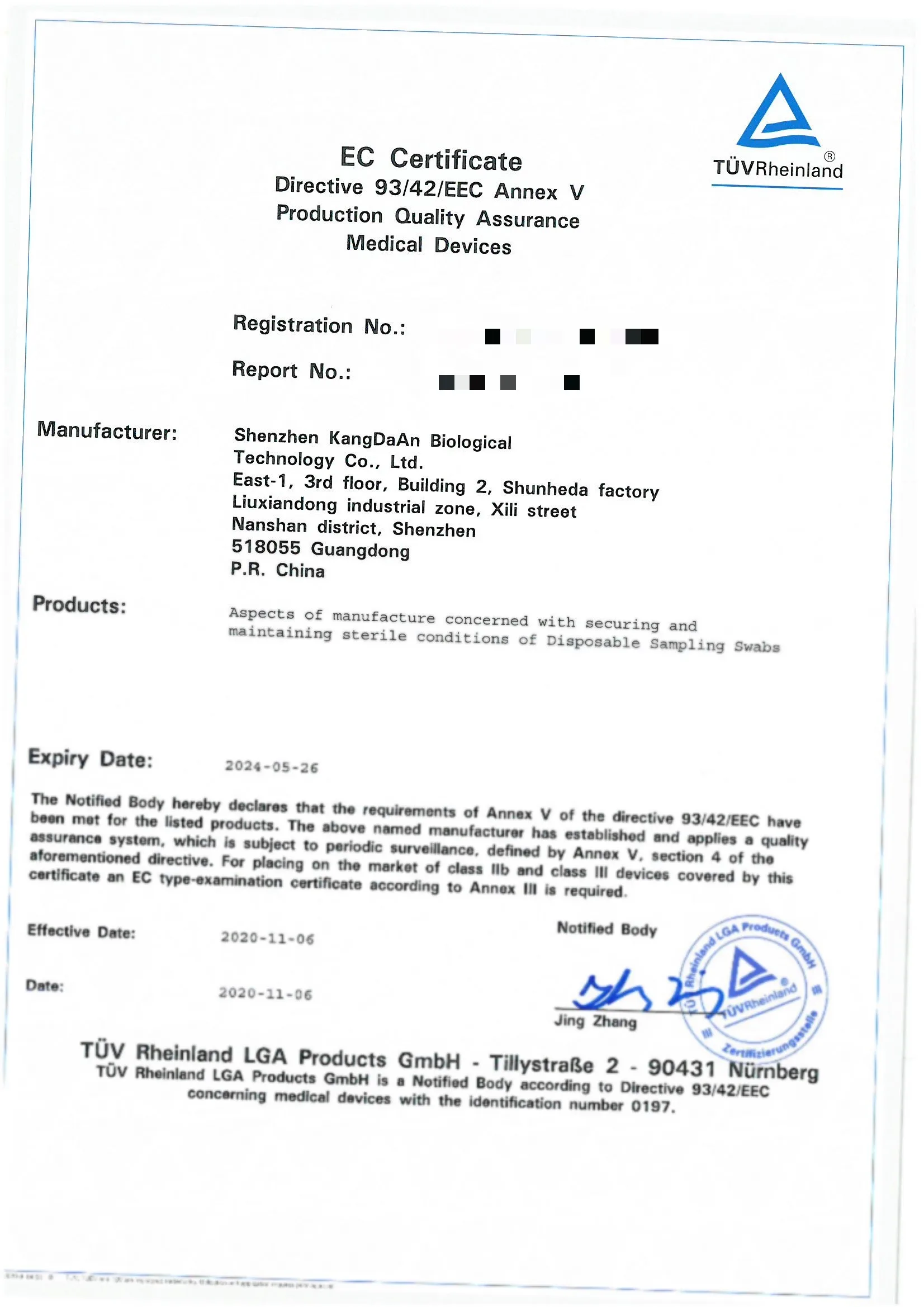 Certificate | TUV CE/ISO 13485 | ||||||