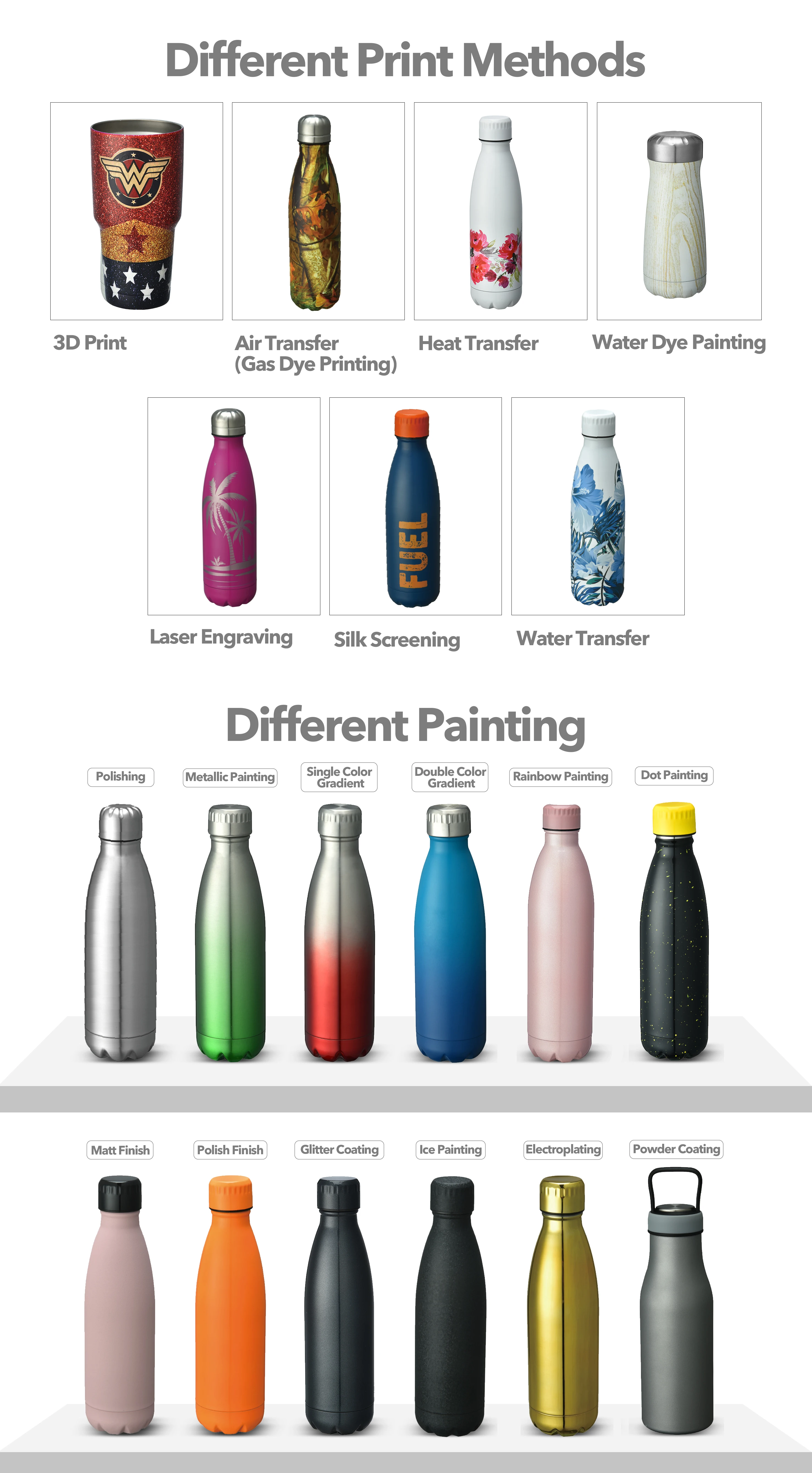 Logo Printing | Silkscreen, Laser Engraved, Embossed, 3D UV Printing, etc.. | ||||