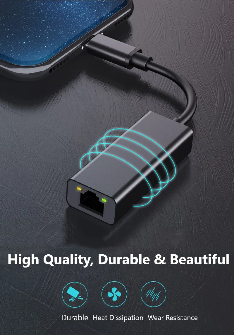 2.Type C to Ethernet Adapter is an easy way to gain wired gigabit network speeds over USB-C for faster HD video streaming, gaming, web browsing, network storage, travel and more.