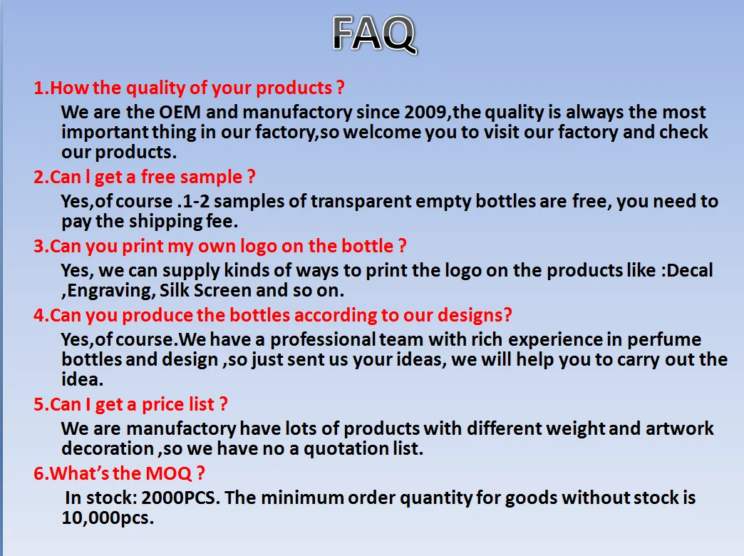 Xinyi Marco Crystal Glass Products Co.,Ltd is a cosmetic bottle manufacturer,which estiblished in 2009,focusing on cosmetic product packaging manufacturing sales and service system.specialing in crystal glass bottle for perfume glass bottle, cosmetics glass bottles and cap. Our products are sold to Europe, America, and Southeast Asia.With high-level technology, advanced printing equipment, and outstanding manufacture talented person ,with a modern factory located in Xinyi automated production equipment and independent production base. We have many talents , including the field of high-quality development ,manufacturing,and sales. Until now we have office 15 staffs, and production line 100 workers. With the idea of WE CARE (Continuous improvement, Attention to any client needs, Responsibility to objectives, Elevate our skills and talents ), Marco is looking forward to walking hand in hand with you, keeping pace with the times, innovating packaging environment, giving the win-win flags and making new heights! Let us do what we do best; the less time you spend ordering supplies, the more you can spend growing your business.