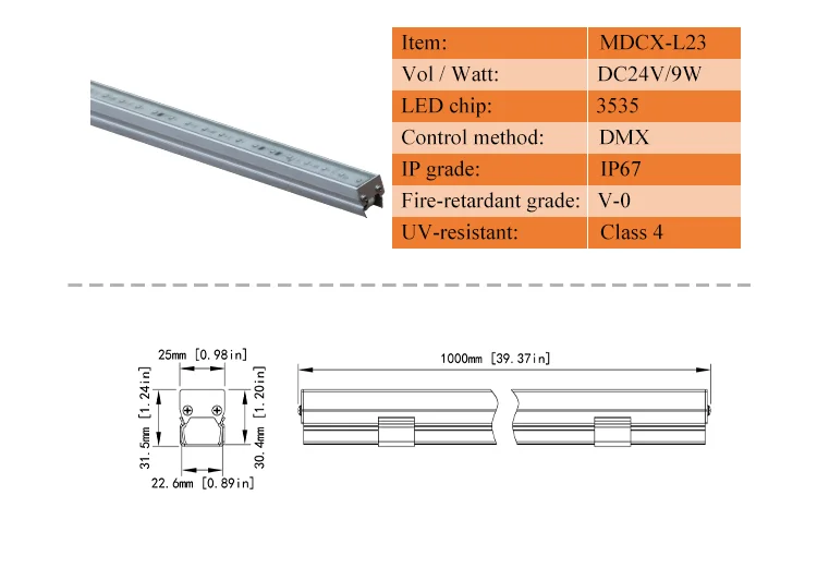 Our standard packing size of LED linear light or wall washer is: 1025mm x 270mm x 165mm