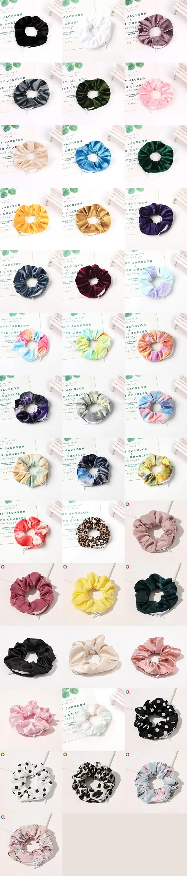 Product Name | Bulk Custom Logo Hidden Pocket Velvet Velvet Silk Satin Chiffon Cotton Polyester Hair Scrunchies With Zipper |