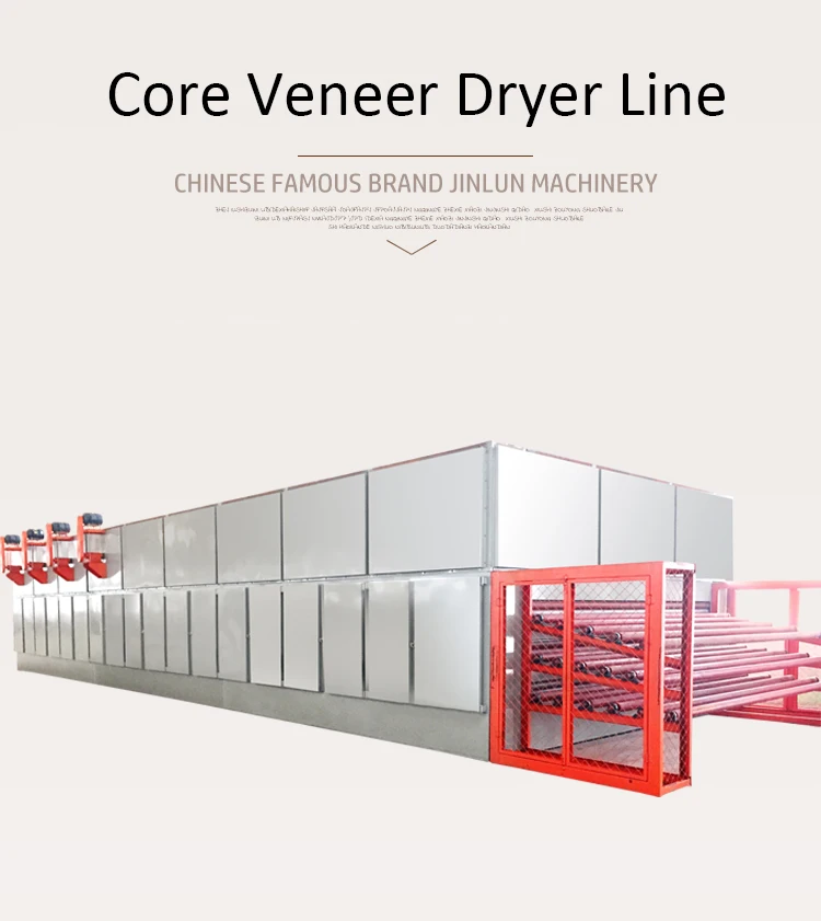 Veneer drying line is important machine in plywood processing, when you peeling get fresh veneer, for long stock ,need remove water and moisture,so you need core veneer dryer or drying line. this Mahcine length and width is according to your veneer size and outpu,so if you want, need tell us these information.