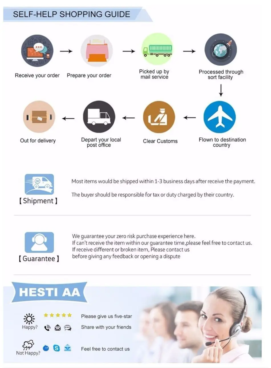 Q:How about the delivery time? A:According to your order quantity,the delivery time will be different.Generally 2-5 days for online order and 3-7 days for big quantity order.We will do our best to send the products to you as soon as possible.