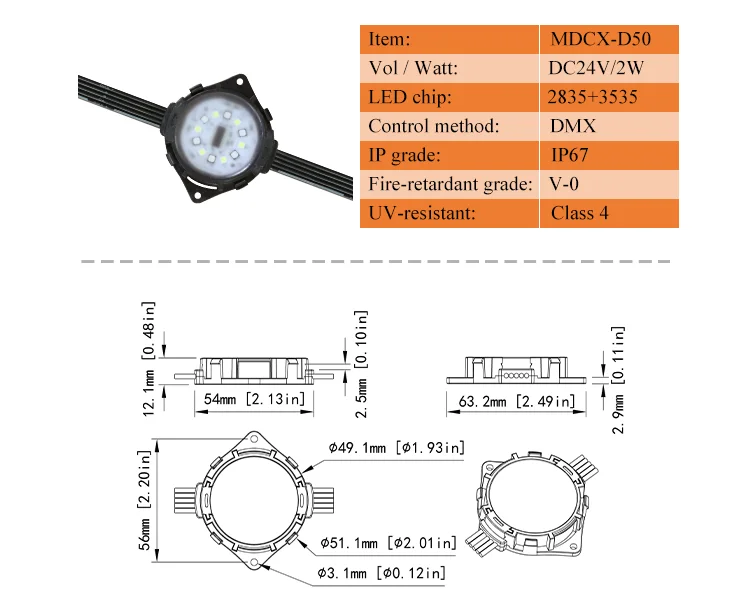 RGBW 50mm pixel led waterproof led dot light for outdoor decoration lighting