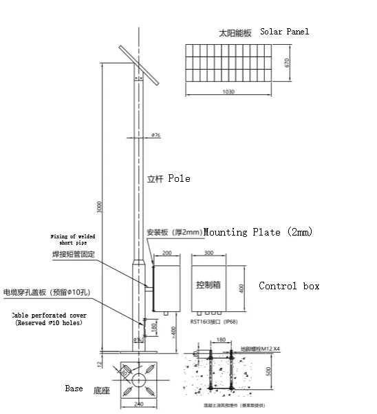 Pole and embedded parts | 3M (Height Customizable), Hot-dip Galvanizing and Plastic Spraying |