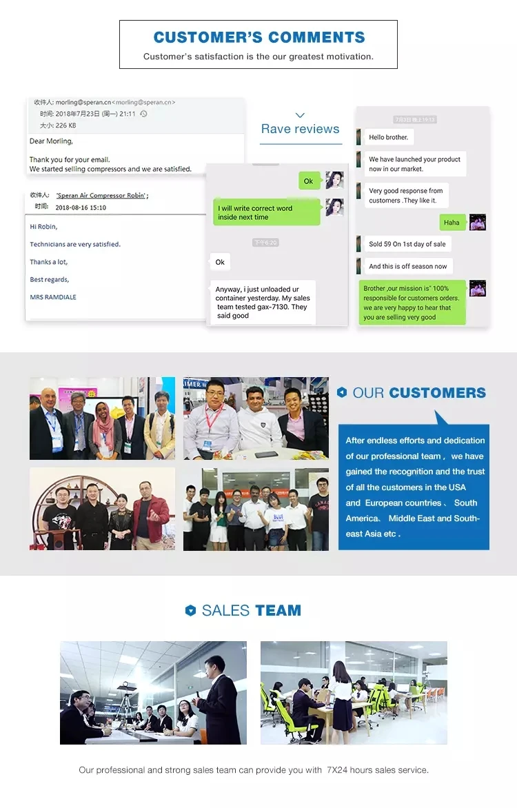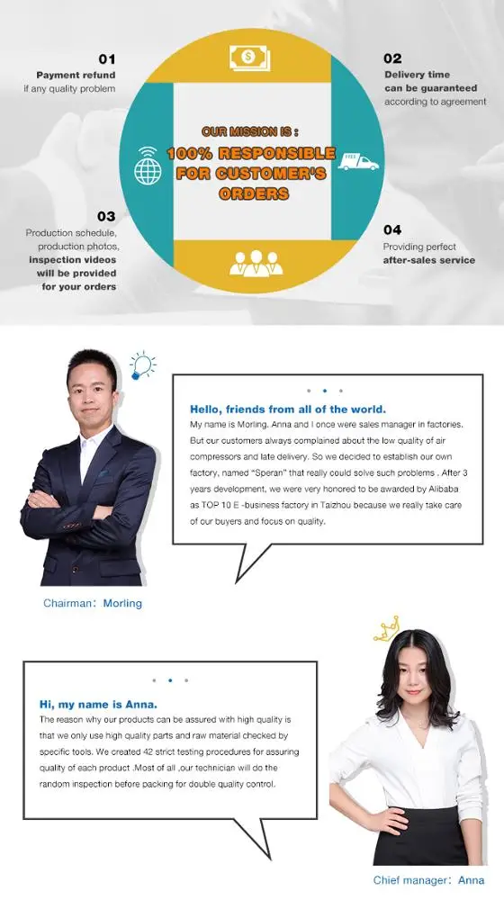 Taizhou Speran Machinery Co.,Ltd.--with our best team of R&D -- is specialized in manufacturing the quality products of oil free &silent air compressors,direct driven air compressors,belt driven air compressors and air compressor pumps & motors. It is our utmost goal to provide the excellent quality products and service for all our customers by using the best quality rawmaterial & parts,standardized operational procedures as well as strictly quality testing.