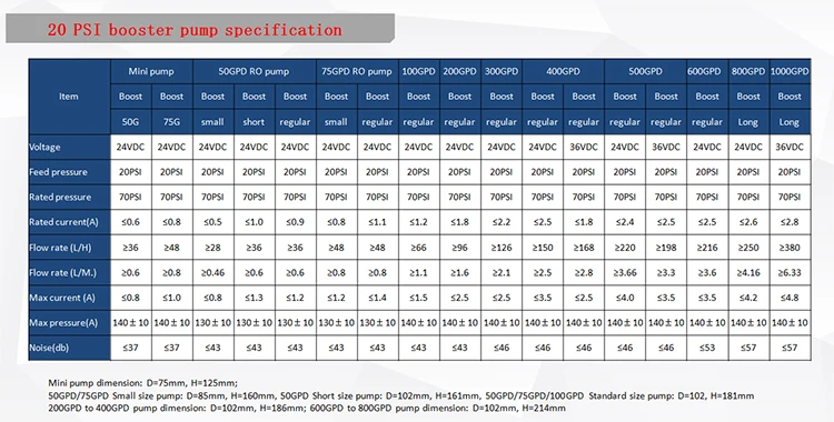 A3: The selection of the pump shall be meeting the requirement of the RO system, total water volume of input water volume and output volume of the RO system should be considered, the pump working flow rate should be equal to the total water volume of the RO system.