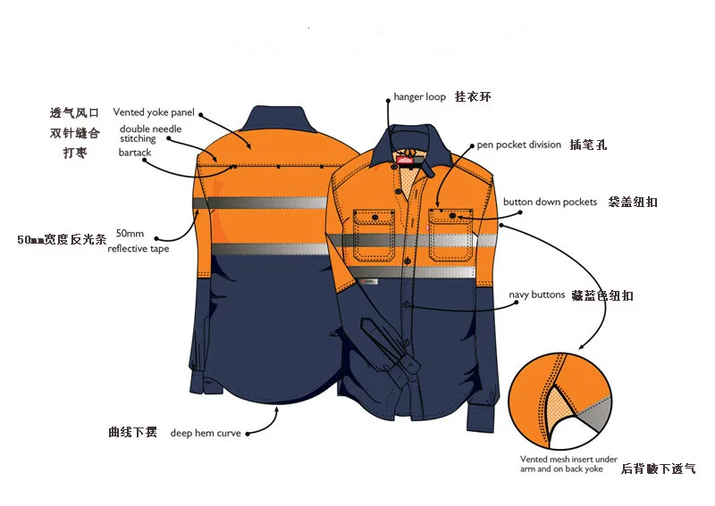 Detailed info of our high workmanship long sleeve his vis shirts