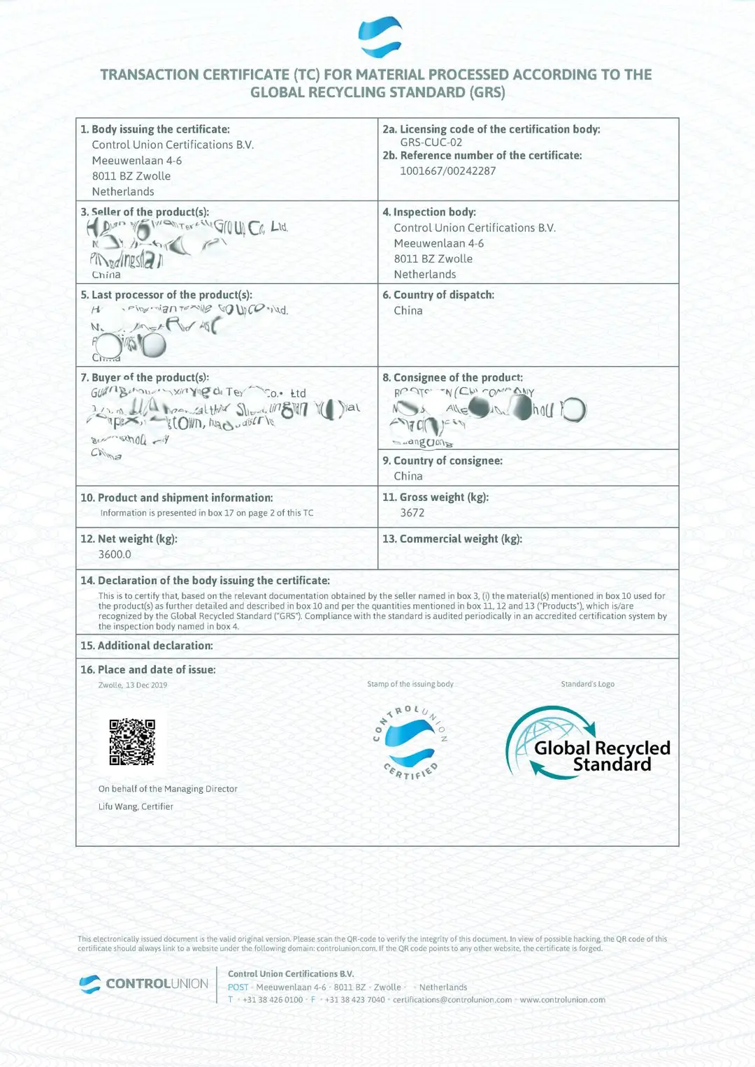 GRS certificate Hi Vis RPET/Cotton Workwear shirts