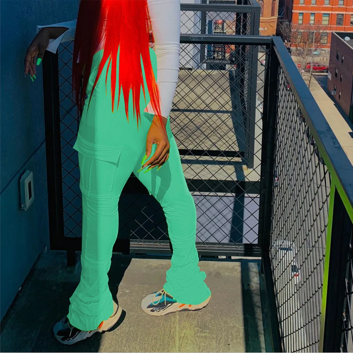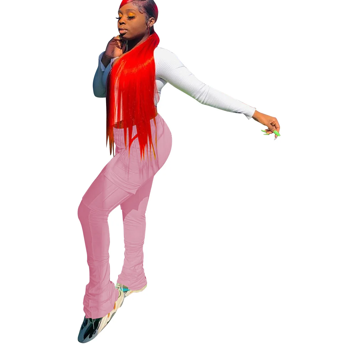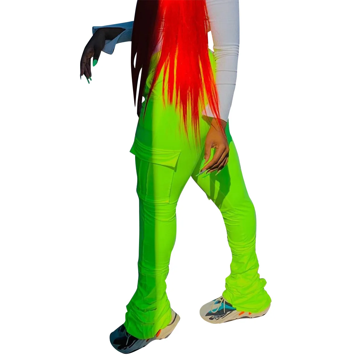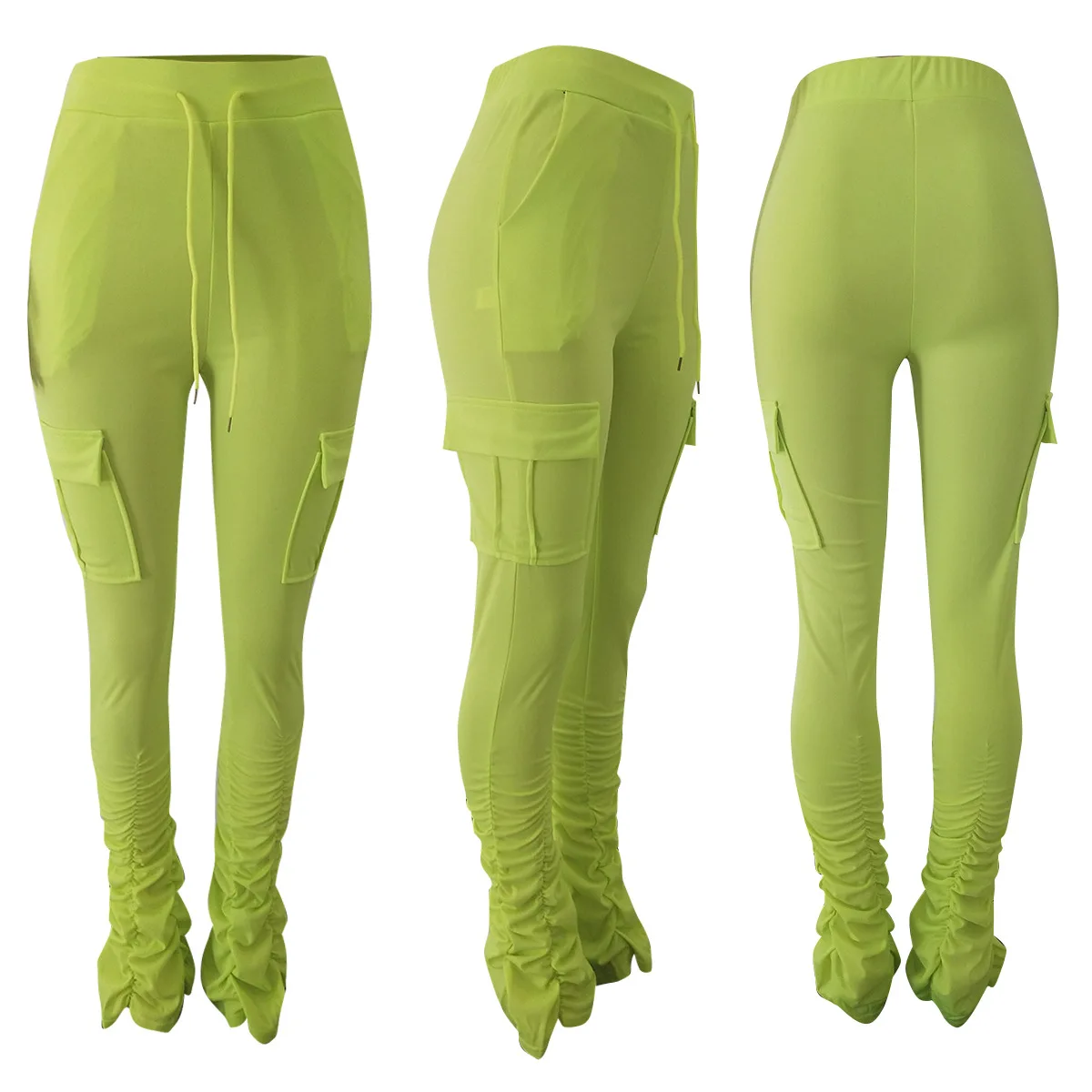2022 New Arrivals Drawstring Solid Color Pocket Flare Legging Women Sweat Pants with Ruched Sides Tight Stacked Pants