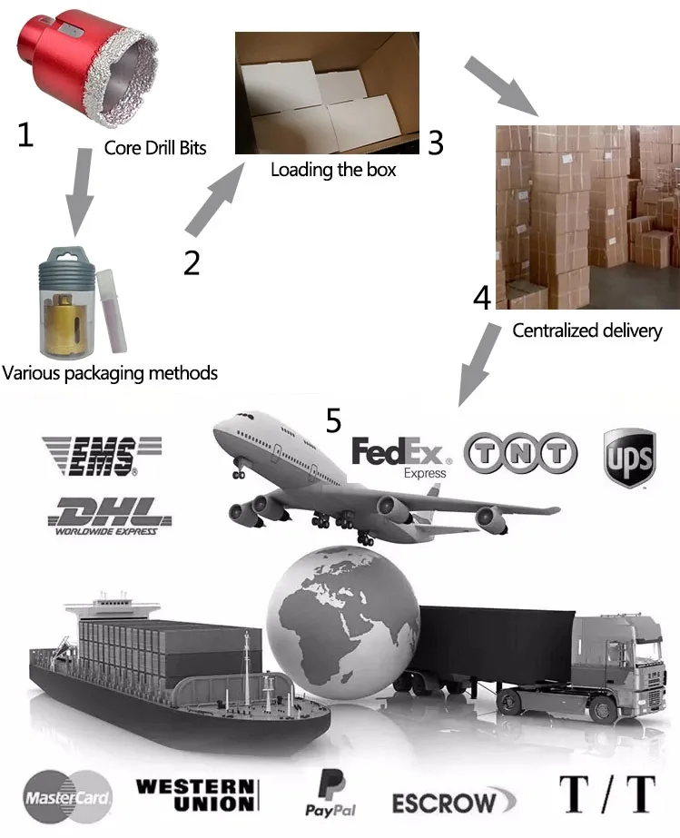 Features: | 1.Very high diamond concentration gives maximum footage and drilling speed in all types of drilling applications. 2.Vacuum Brazed process allow bits to cut without water and ensured a longer life,Use water to cool down the bit while drilling is highly recommended to extend the lifetime if the bits. 4.Suitable for core drilling of Stone and Tiles. 5.Ideal for both professional contractors and DIY users. |