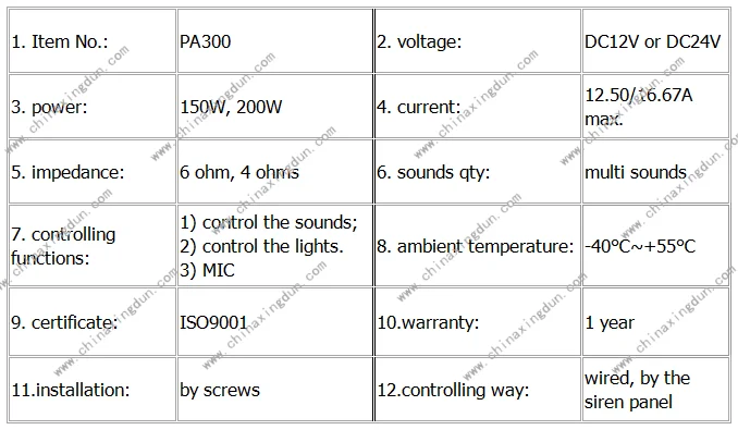 DC12V or DC24V 80W watt vehicle signal equipment security fire alarm electronic siren amplifier speaker PA300