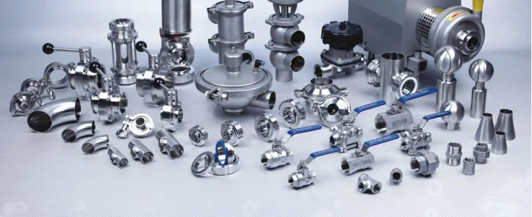 --Sanitary valves: Diaphragm valve, ball valve, butterfly valve, check valve, Steam traps, water traps, safety valve, pneumatic valves, solenoid valves etc.