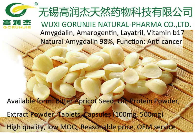 Amygdalin/Amarogentin/Layatril/Vitamin b17: Natural Amygdalin 98%, Function: Anti cancer. Available form: Bitter Apricot Seed, Bitter Apricot Seed Oil, Bitter Apricot Seed Protein Powder, Extract Powder, Tablets, Capsules (100mg, 500mg)