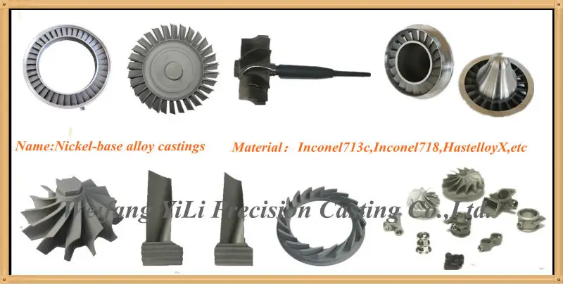 3. Nickel base alloy castings used for turbojet engine, turbocharger or Marine engine, a motorcycle engine, ship engine or the train engine, applied in aerospace, large ships, Marine corps, locomotive, chemical industry, construction machinery, etc.