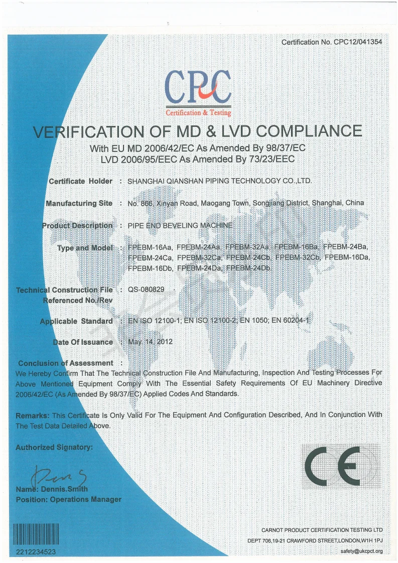 Beveling Speed: ≤2Min /pipe bevel (DN200 SCH40)