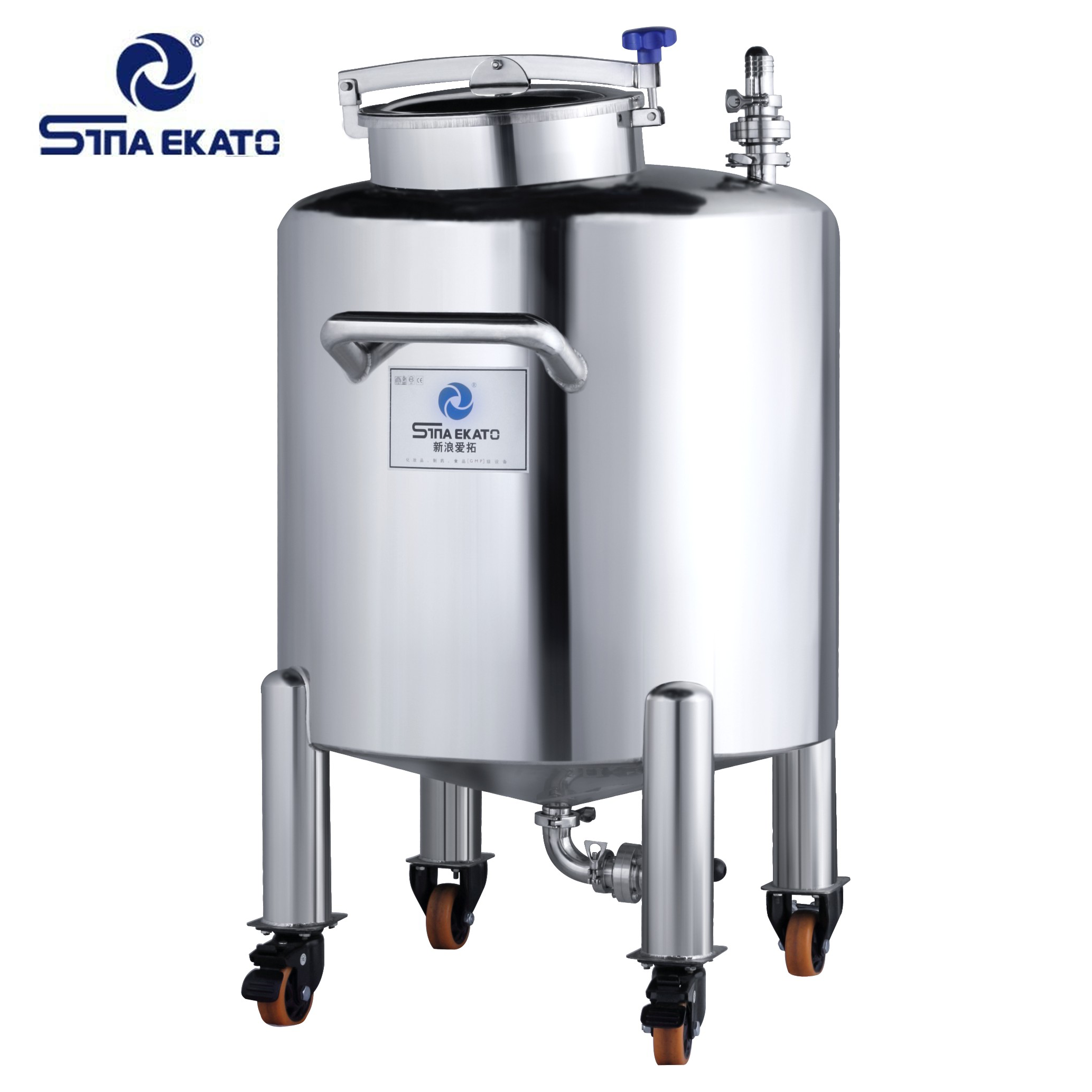 The body of this series of stainless steel storage tanks formed by cylindrical stainless steel, and equipped with sanitary manhole, cleaning ball, liquid level gauge.