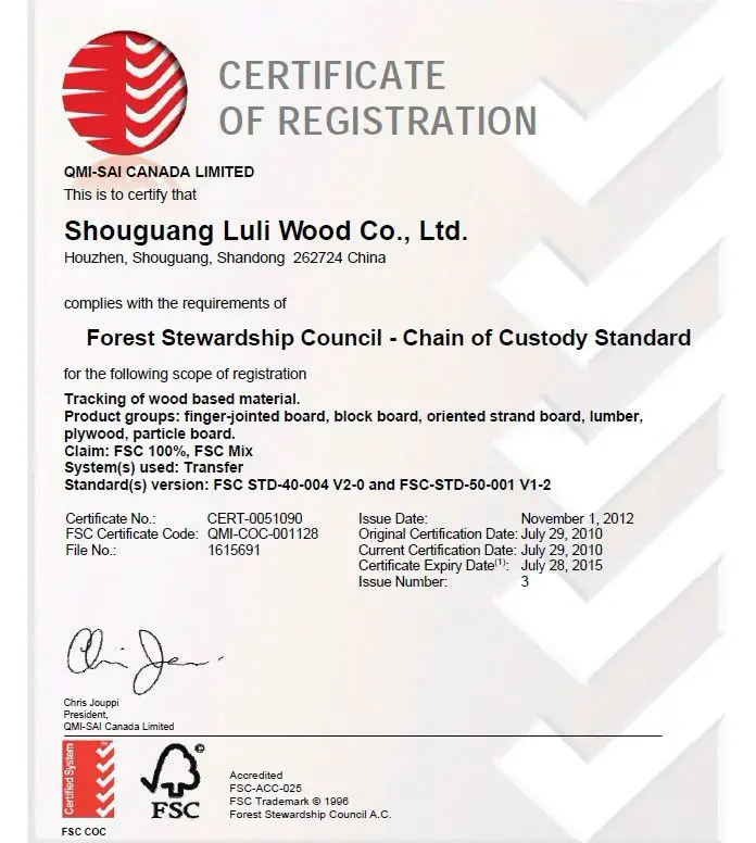 A: We are luligroup,manufacturer of many kinds of plywood since the year 1985.