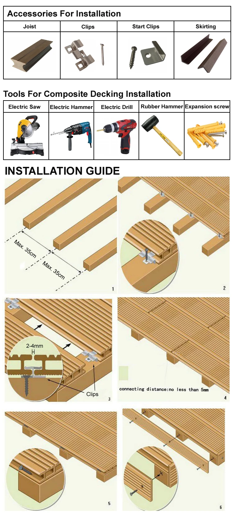 Feature | 1.Water proof,anti-uv,anti-slip, anti-oxidation, minimal moisture absorption, termite resistance, etc |
