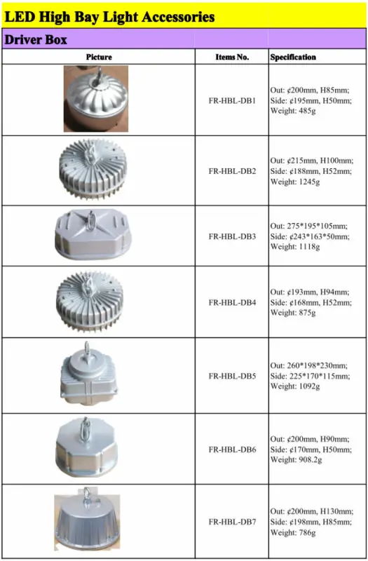 | Parts List | driver box,heat sink,reflector,lens,hook |