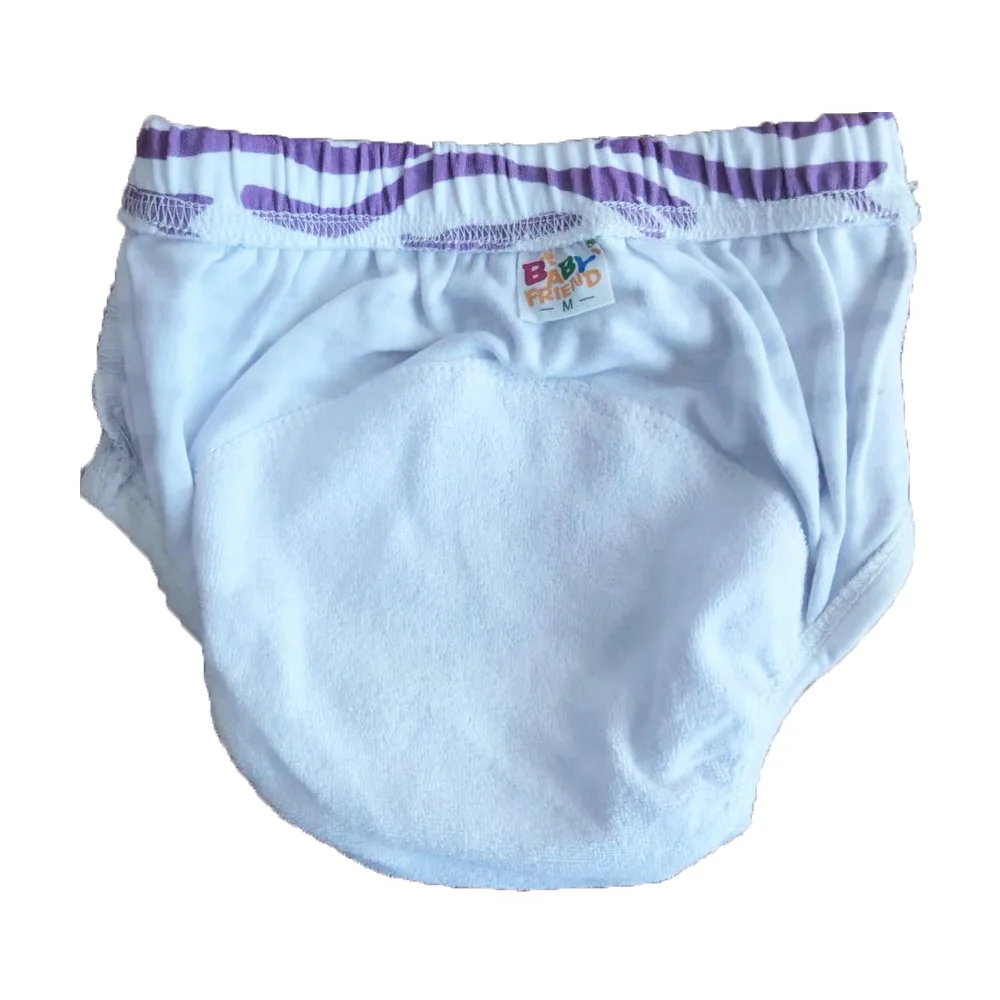 purpose | Training pants are designed for babies who have just started to have urine awareness, so that the baby has a wet feeling, and they slowly get out of the diapers, gradually to learn how to pee, And with the protection of training pants,other clothes will avoided being contaminated. So it is called training pants. Babyfriend potty training pants is the Bridge between Pull-ups and Underwear for Toddlers and Babies, allow baby to still be wet and realize that she/he had an accident. Perfect for your toddler to learn potty training,saves lots of changes of outer clothes, and protect the furniture and carpets Softer than paper diapers, prevent baby diaper rash,no stimulation for baby, no fading. A great way to transition from diapers to real pants, easy to wash and easy to take care of. |