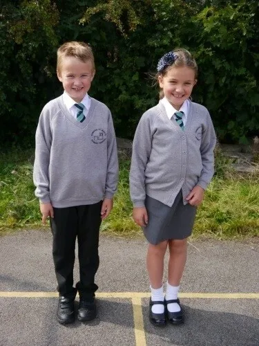 * School uniform: shirt, skirt, pinafore, blazer, polo, vest, cardigan, shorts, pants, tracksuit