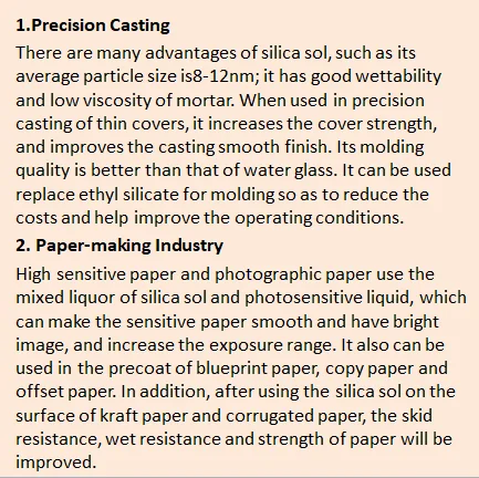 Item/Index | Si02,% | Na20,%≤ | PH Value | Viscosity(25°C) mpa.s ≤ | Density(25°C) g/cm3 | Average particle diameter, nm |