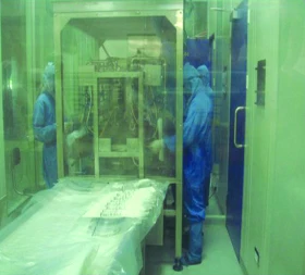 Uasage: Ion air cleaning plastic bottle, filling infusion liquid into bottle and sealing cap.