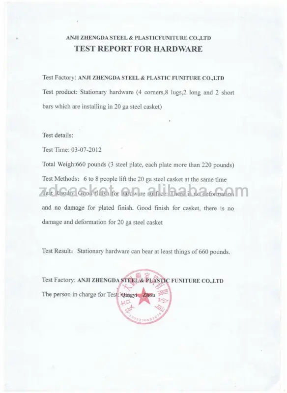 4.Each Casket Factory Tested For Quality Assurance