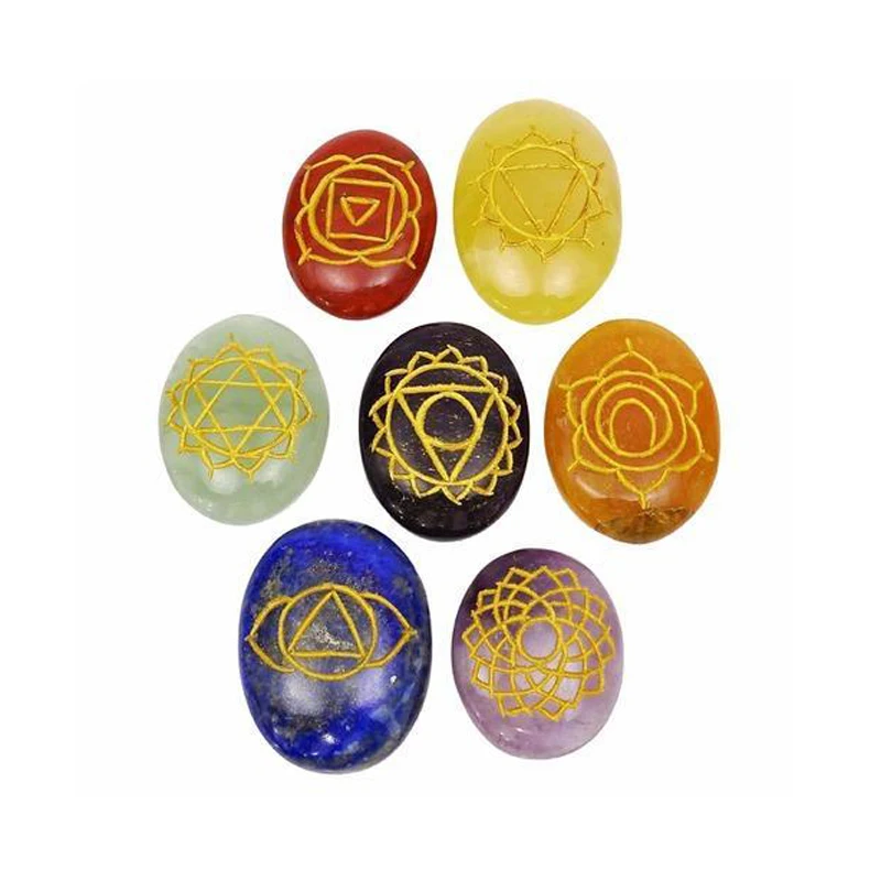 Производитель семь чакр амулет исцеление Wicca Reiki энергетические рунические камни выгравированные кристаллы набор буддизма фэн-шуй