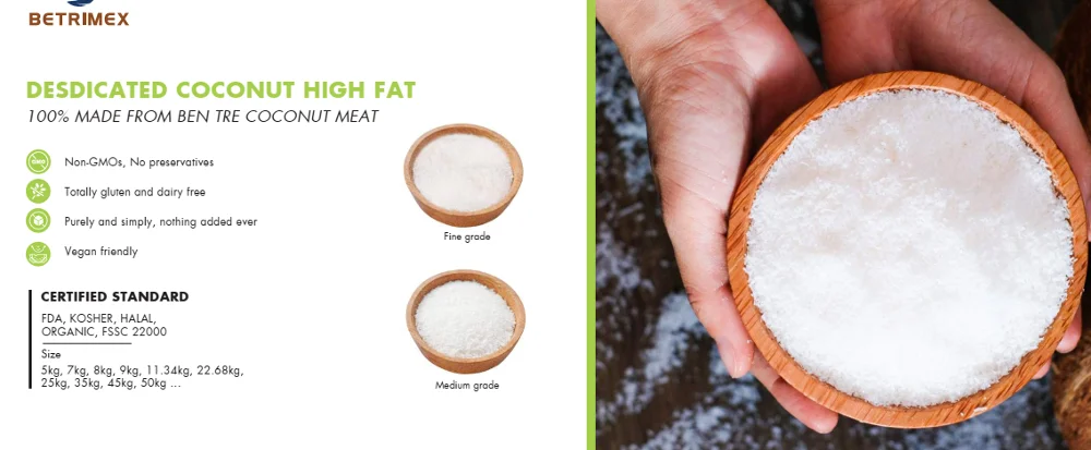 Mo Cay Factory: Tan Loc Hamlet, Tan Hoi Commune, Mo Cay Nam Dist., Ben Tre Pro., VN ( Product: DESICCATED COCONUT )