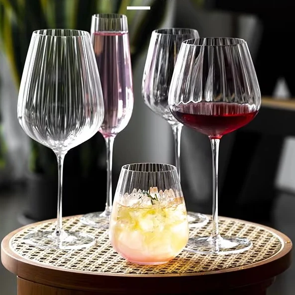 Креативный полосатый хрустальный бокал для вина с золотыми краями